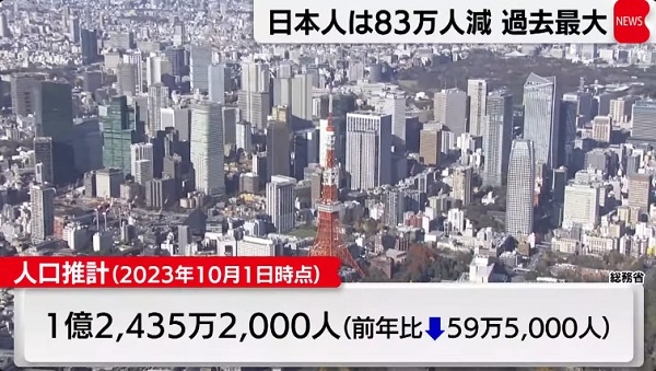 24年4月12日(金)日本の総人口 13年連続で減少