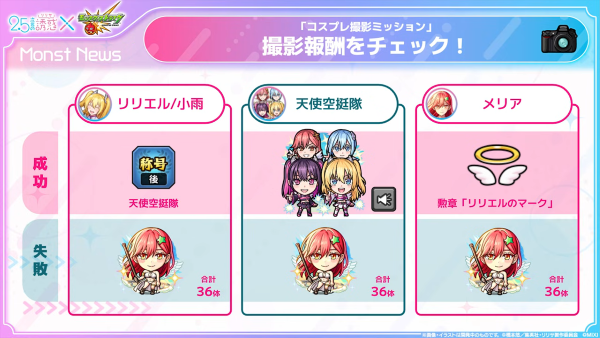 4/20(日)4:00から、撮影できるコスプレイヤーに「小雨」「天使空挺隊」「メリア」が追加!「撮影報酬」で、コラボキャラクター「メリア/アリア(★6)」や、勲章などがもらえる!